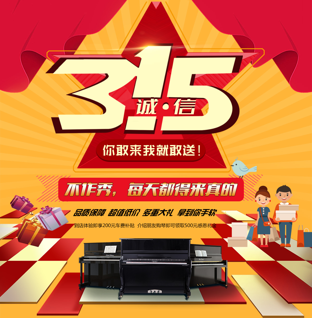 诚信3.15你敢来我就敢送!品质保障,超值低价不作秀,每天都得来真的!多重大礼,拿到你手软到店体验即享200元车费补贴介绍朋友购琴即可领取500元感恩礼金