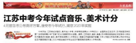 通过多次热议,今年开始,江苏将试点音乐、美术纳入中考,并将考核结果计入中考总分,据了解,江苏淮安、南京、南通等多地将陆续试点实施中小学生艺术素质评价制度,将音乐、美术考核结果计入中考中分,根据江苏省教育厅部署,今年4月前江苏各市要公布初中毕业生艺术素质测评方案,2020年前全省初中毕业生艺术素质测评结果计入中考成绩。