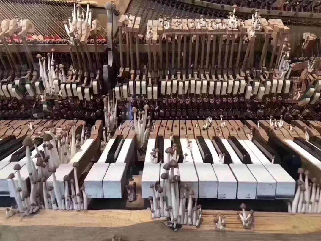 钢琴受潮后,轻则击弦机变形卡键、较严重则遍布霉菌、严重的甚至“长蘑菇”!当钢琴开始生霉,就说明其受潮已经十分严重,很多人以为擦拭掉外在霉菌即可,实际上钢琴的实木、羊毛等材质的部件已经岌岌可危了。