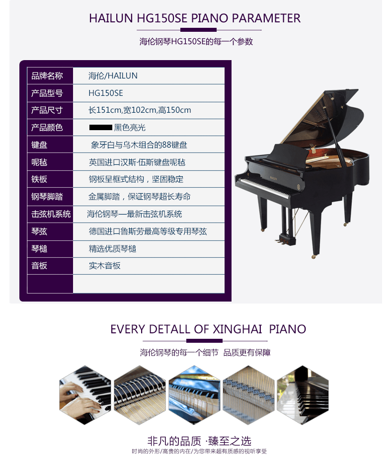 型号:HG150se类型:三角钢琴系列:中端家用系列