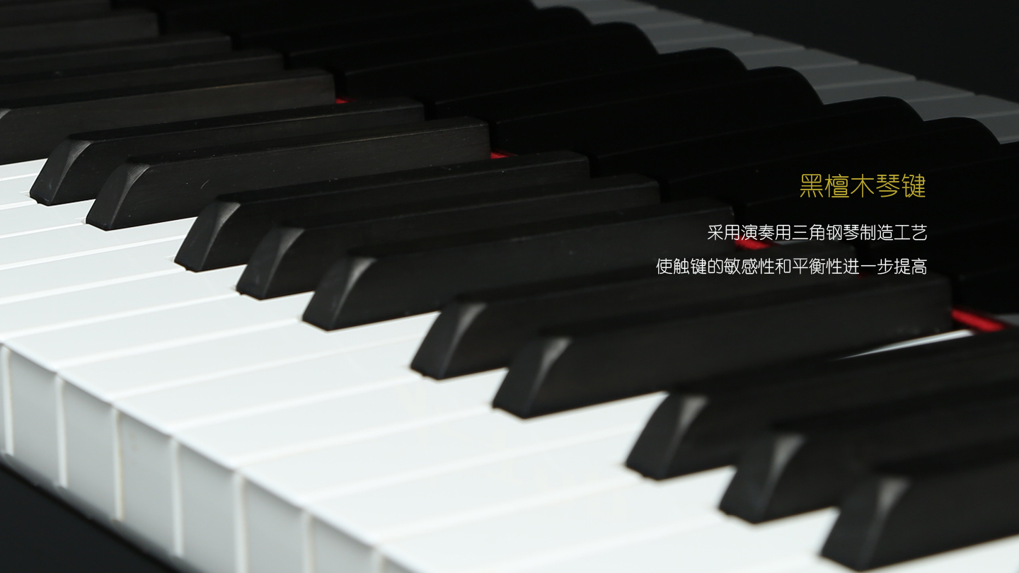 黑檀木键盘三角钢琴的制造方式,使触键的敏感度、平衡性进一步提高。