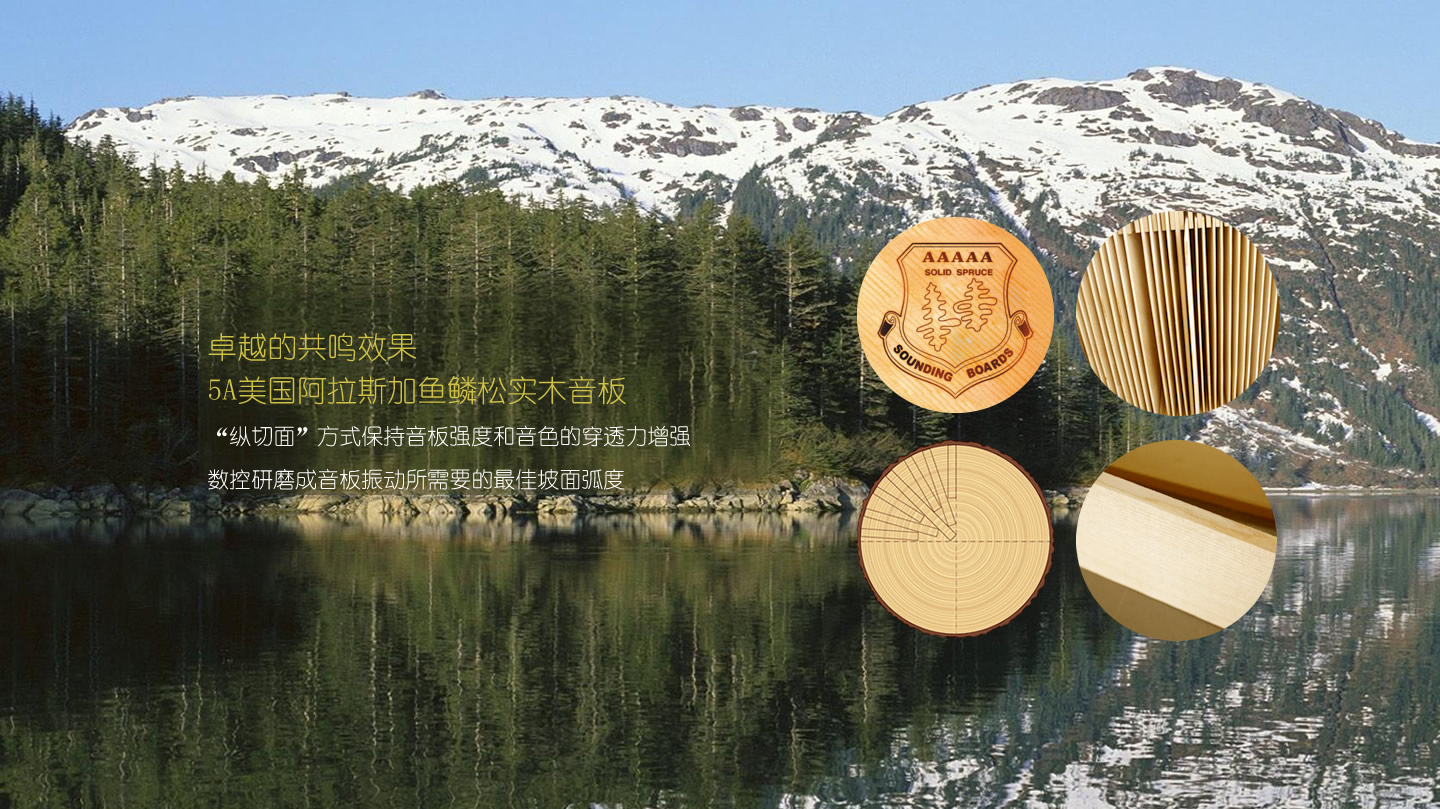 AAAAA级美国阿拉斯加最上等鱼鳞松实木音板。