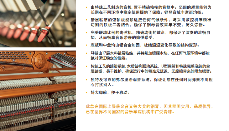 旗舰款,它是我们事业成功的起点,多年来在世界性钢琴大赛中屡获殊荣,是最受消费者追捧的畅销款。