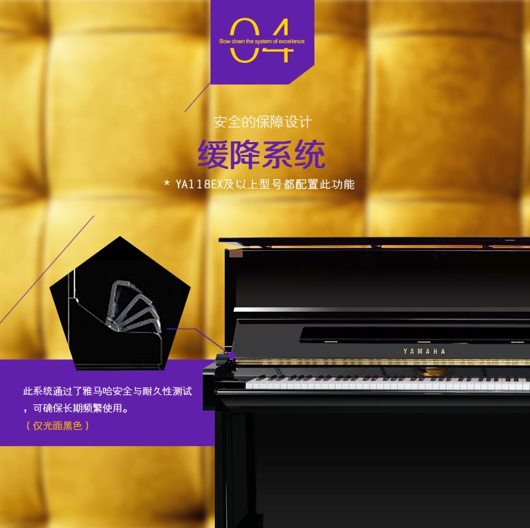 雅马哈YA系列以创造“音・乐”为原点,在细节上高品质追求钢琴本质的卓越性能。其特制的内衬弦槌、精确平均的击弦机、超长的悬挂技术、日本原产V-pro真空铸铁板,集100余年技艺与现代精工于一身,让您享受轻盈灵敏的触键与操控,演绎丰富而内涵深厚的完美音色。此外,其丰富多样的规格配置,更能满足您多元化的喜好需求。具备世界基准的YA系列,每一台都融入了造琴师对 “音・乐”的毕生热爱。是从初学者到业余爱好者乃至音乐教育家的心爱之选。好的钢琴,育人为上。这是雅马哈之经典YA系列。