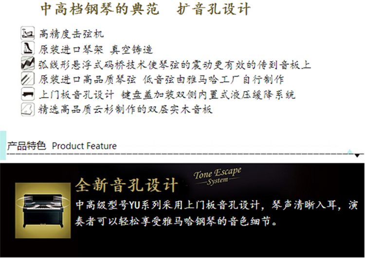 | 型号:YU128EX | 类型:立式钢琴 | 系列:高端家用系列 |