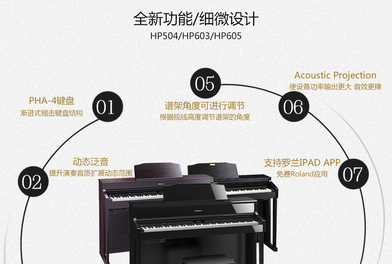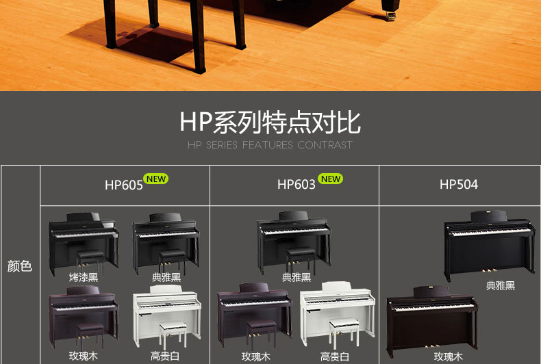 型号:HP504 HP603 HP605类型:立式钢琴系列:电钢琴系列