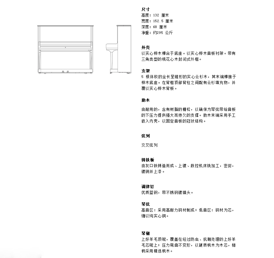 型号:K-132型号类型:立式钢琴系列:演奏级系列