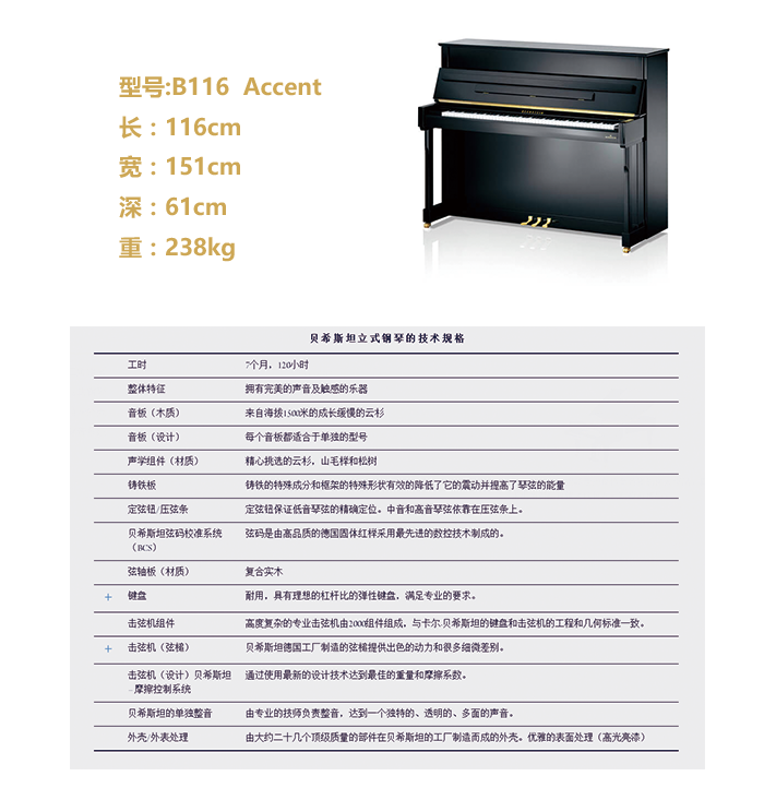 型号:A124 (B124) Style类型:立式钢琴系列:演奏级系列