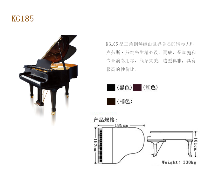 型号:KG185类型:三角钢琴系列:教学专用系列