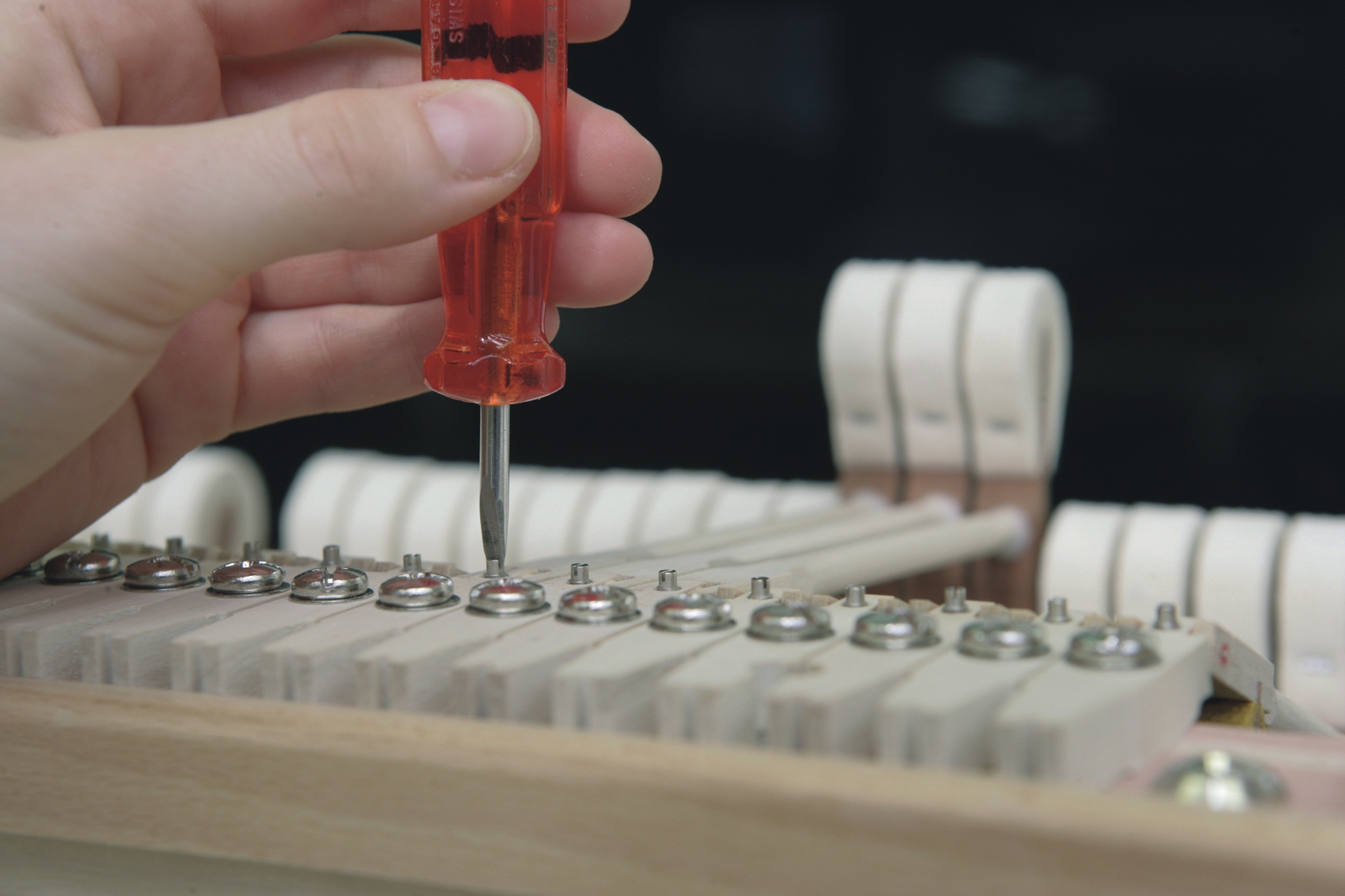 Schimmel Classic(经典)系列的C169型三角钢琴,形态小巧玲珑,结构设计和制作工艺一丝不苟。K280型演奏会三角钢琴独特的共鸣设计和击弦设计原理,也创造性地应用其上。不仅如此,其音板设计巧妙地做了延展扩大,C169型三角钢琴的声学品质和弹奏性能,在同样尺寸的钢琴中出类拔萃,甚至媲美稍大尺寸的三角钢琴。当您弹奏C169型三角钢琴的时候,设计的独具匠心,可以被淋漓尽致地触摸和感受到。