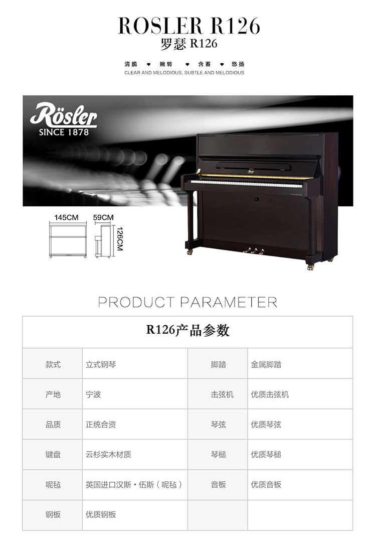 型号:R 126类型:立式钢琴系列:普通家用系列